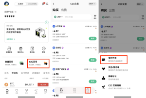 左上角点击【买币】—【C2C买币】—右上角【更多】—【个人设置】—【添加收付款方式】,按要求完成操作。