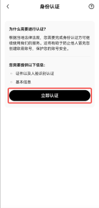 登录账号后,点击左上角个人中心图标–【个资料和设置】–【个人资料】–【身份认证】,进入身份认证页面。如果未完成认证,请点击【立即认证】,您需要上传证件照,如身份证的正反面,并通过人脸识别,根据页面提示完成证件上传和实人认证。